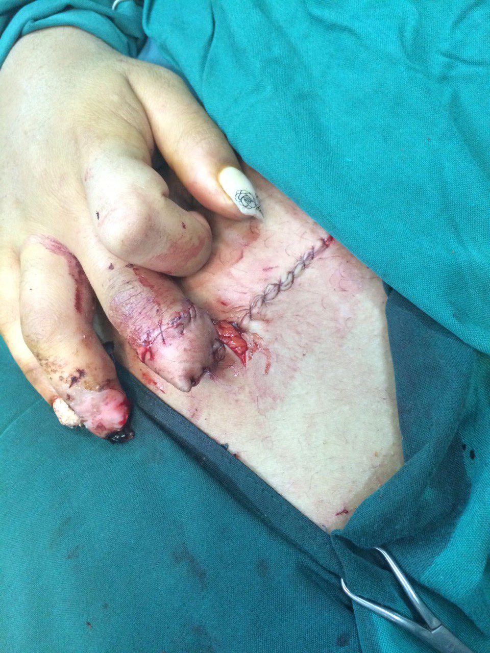 بیمار دختری 19 ساله که دست راست زیر دستگاه پرس رفته و در یکی از بهترین بیمارستان خصوصی تهران پیوند شد